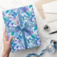 Papier Cadeau Aquarelle vive motif floral en bleu et Turquoise