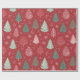 Ce rouleau festif de papier d'emballage présente un charmant éventail d'arbres de Noël illustrés, chacun dessiné dans un style épuré et minimaliste sans aucune décoration. Placés contre un arrière - plan rouge vif, les arbres se distinguent par leurs silhouettes simples et leurs lignes gracieuses, offrant une touche moderne sur un motif de vacances classique. Les arbres varient en forme, en taille et en texture, présentant des sapins, des épinettes et des pins dans des verts doux, des teals muets et des blancs pâles. Leurs branches non décorées mettent en valeur la beauté naturelle des verdures d'hiver, évoquant une forêt viticole paisible. Avec son design d'inspiration scandinave et sa palette de couleurs chaudes, ce papier d'emballage est parfait pour les amateurs de cadeaux qui apprécient l'élégance sobre et le charme saisonnier intemporel.