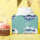 Arbre de Noël Papier d'enveloppement Artistique Bleu Joyeux Script. Design de vacances avec un arbre de Noël artistique décoré et un script blanc tendance. Vous pouvez modifier n'importe quel texte sur le papier d'emballage.