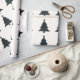 Papier d'emballage moderne de Noël avec un design intemporel avec des arbres de Noël avec un motif bleu marine et vert pâle muet.