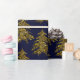 Papier Cadeau Arbre de Noël en or brillant sur bleu foncé