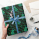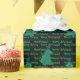 Joyeux Noël! Arbre vert bleu moderne sur emballage cadeau noir.