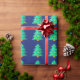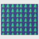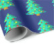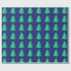 Papier Cadeau Arbre de Noël vert 8 bits avec arrière - plan bleu