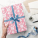 Ce joli rouleau d'emballage de Noël rose et blanc, présente un arbre de Noël fantaisiste et un motif santa claus.
