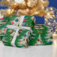 Papier Cadeau Arbres de Noël blancs rétro vert