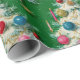 Ce papier d'emballage présente un thème de Noël fantaisiste et rétro. Ce design présente un motif répétitif d'arbres de Noël blancs et moelleux, décorés d'ornements vintages colorés et de guirlandes perlées. Ce design est conçu contre un arrière - plan vert dynamique. Ce papier de charme est parfait pour tous ceux qui aiment la nostalgie d'un séjour du milieu du siècle.