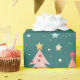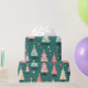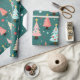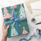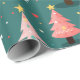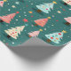 Des couleurs amusantes décorent de mignons petits arbres de Noël qui défilent sur ce papier d'emballage léger. Un arrière - plan bleu turquoise foncé et vert repose derrière les arbres festifs colorés en rose, bleu clair, avec des étoiles jaunes et des billes multicolores. Ils sont d'un motif d'aquarelle rétro.