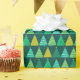 Un motif de vacances parfait pour tous vos cadeaux de Noël et de vacances. Ce motif de vacances festif est une adorable illustration d'arbres de Noël géométriques triangulaires de style rétro. Dans les couleurs de vert vif et de teals sur un arrière - plan vert neigeux hivernal foncé. Cet audacieux motif de fêtes rétro saura vous séduire par son caractère coloré et festif sous votre sapin de Noël. Offrez à vos cadeaux de Noël un peu de pizzaz supplémentaire cette saison de vacances et faites l'air extérieur tout aussi beau que ce qui est à l'intérieur.
