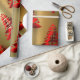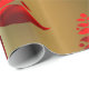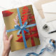 Un élégant enveloppement de Noël avec un motif d'arbres rouges de Noël dressé contre un arrière - plan métallique en or pour ajouter une touche de classe festive à votre cadeau de cette période de fêtes.