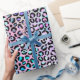 Stylish Rainbow Iridescente Gradient and Leopard Spots Motif avec des couleurs violet, rose et bleu