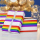 Ce papier d'emballage coloré et personnalisé comporte un motif à bandes arc-en-ciel. Les couleurs arc-en-ciel typiques, rouge, orange, jaune, vert, bleu et violet, sont imprimées dans un motif rayé sur un arrière - plan blanc solide.