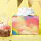 Des motifs lumineux et colorés présentent des arcs-en-ciel qui s'écrasent sur des nuages moelleux contre un ciel animé. Le motif répété crée une toile de fond fantaisiste et joyeuse.