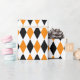 Un papier d'emballage conçu avec un motif arlequin noir, orange et blanc en grande taille. Customisez la couleur blanche de l'arrière - plan parmi d'autres options.