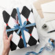 Papier Cadeau Arlequin noir et blanc aux accents rouges