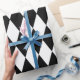 Un papier d'emballage conçu avec un motif arlequin noir et blanc en très grande taille. Customisez facilement la couleur blanche.