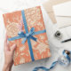 Papier d'enveloppement avec un design de William Morris, le célèbre designer anglais du mouvement Arts and Crafts, mettant en vedette Wild Tulips (1884), qui sont placés sur un fond de pêche. Ce motif s'inspire des brocades turques.