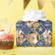 Enveloppez votre cadeau de Noël dans le style Art déco avec cette enveloppe cadeau photo personnalisée ! Un motif géométrique transparent, aux formes diamant, étoiles et typographie stylisée. Personnalisez le modèle avec trois photos préférées, le nom du récipiendaire et l'âge d'anniversaire. Une façon luxueuse et unique de célébrer la saison festive pour la famille et les amis! Couleurs imprimées : bleu marine foncé, blanc et or. Disponible avec un choix de finition mate ou brillante.