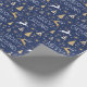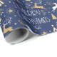 Papier Cadeau Art Déco Renard de Noël Nom personnalisé Bleu fonc