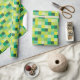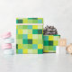 Carrés de caractéristiques de ce papier d'emballage dans différentes nuances de vert et de jaune dans un motif pixelated.