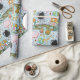 L'astronaute sur le papier cadeau d'anniversaire du garçon de la lune, avec astronaute, astéroïdes, lune rover, planète télescope, vaisseau fusée scène extra terrestre sur la lune. Joli style de dessin animé coloré invitation fantaisiste adapté à un jeune garçon ou une fille qui aime l'espace extra-atmosphérique et les thèmes de science-fiction.