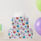Featuring a cute astronaut floating among colorful planets, stars, and a magical galaxy background, this gift wrap is perfect for space-themed birthday parties.