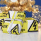 Un panneau jaune à haute tension. Cette conception semble vraiment efficace sur ce papier d'enveloppement