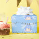 Petit garçon accroché à la ligne de vêtements avec nuage et bleu ciel arrière - plan. Peut être utilisé pour le Baby shower.