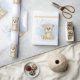 Arrière - plan d'aquarelle bleu doux avec un ourson brun dessiné à la main et un script bébé font de ce cadeau parfait pour tous vos cadeaux de douche bébé garçon. Le papier d'emballage parfait pour le baby shower est simple et doux.