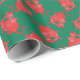 Un rouleau de Giftwrap amusant, avec un motif de petits dragons rouges mignons sur un arrière - plan vert foncé, d'une aquarelle peinte à la main par Judy Adamson.