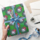 Papier Cadeau Bal de soccer blanc et bleu sur vert