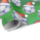 Papier Cadeau Bal de soccer bleu et blanc sur vert