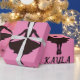 Papier d'emballage rose Ballerina avec un nom personnalisé et des lettres d'anniversaire heureuses.