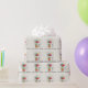 Le design original et amusant de Destei pour le thème d'anniversaire, avec des ballons d'anniversaire colorés et deux boîtes de cadeaux emballées avec de jolis arcs. Le design est encadré de confettis gais faits d'étoiles et de points. Les couleurs sont le rouge, le rose, le bleu, le jaune, le violet, le turquoise et le beige. Il y a aussi deux zones de texte personnalisables où l'une est destinée à l'âge de la personne et l'autre est destinée au texte personnalisé.