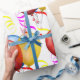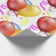 Enveloppez vos cadeaux dans ce papier d'emballage de style fête. Ce papier présente un imprimé à ballon rouge bleu et jaune partout dans la conception. Il y a aussi des flux multicolores dans l'arrière - plan. Un papier classique pour vos cadeaux de fête.