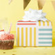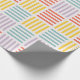 Un motif coloré et géométrique avec des blocs de lignes parallèles dans une grille, avec chaque bloc dans une couleur vibrante différente. Ce design allie un style d'inspiration rétro et un minimalisme moderne, ce qui le rend visuellement frappant et amusant.