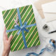 Ce papier d'emballage festif et amusant est polyvalent et peut être utilisé pour donner des cadeaux ou des projets artistiques et artisanaux. Il est idéal pour toutes les occasions telles que vacances, anniversaires, mariages, douches nuptiales, baby showers, anniversaires ou cadeaux généraux. Le design présente des rayures diagonales vert clair et foncé sur un arrière - plan doré. Parfait pour Noël.