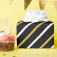 Conçu pour être coordonné avec notre collection du Nouvel An Noir et Or, ce papier d’emballage rayé or et blanc sur arrière - plan noir est parfait pour envelopper ces cadeaux du Nouvel An!