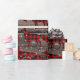 Un papier d'emballage de Noël avec un arrière - plan en carton de grange en bois avec un motif à répétition de renard rouge à motif de buffle.