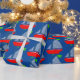 Des voiles de Noël volent au-dessus du pont de ce voilier de vacances. Couleurs vives vert et rouge contre mer foncée de bleu ont mis ce papier d'emballage de Noël comme distinctif. Parfait pour les marins de votre équipage.