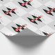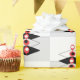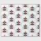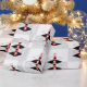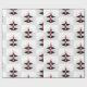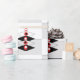 Le design de style Retro Atomic Art présente des "baubles" rouges/blancs/noirs centrés entre une tour à quatre dimensions de plans géométriques sur un arrière - plan de blocs colorés gris
