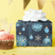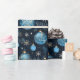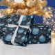 Baubles de Noël bleu intense sur un arrière - plan bleu foncé et étoiles rétro or - parfait pour l'emballage cadeau de Noël