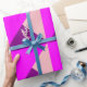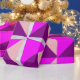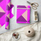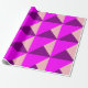 Ce papier d'emballage a une conception Bauhaus de triangles superposés en violet, magenta et rose.