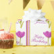 Papier d'emballage d'anniversaire dans un pourpre, blanc et vert comportant une peinture pourpre simple de tulipe de beaux-arts. Personnalisez ce document d'anniversaire de girlie avec votre propres relation et nom. Lit actuellement la bonne d'enfants Joanna de joyeux anniversaire. Perfectionnez pour envelopper un cadeau spécial pour la bonne d'enfants ou Nan. Peinture unique d'aquarelle et conçu par Sarah Trett.