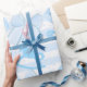 Petit garçon motif en bleu avec cheval à bascule, couche bébé, arc et une épingle en bleu avec élégantes rayures bleues et blanches avec points brillants bleu clair dans l'arrière - plan. Un simple nom de bébé écrit en deux polices. Personnalisez en changeant le texte.