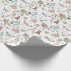 Ce papier d'emballage "Baby it cold out", neutre pour les hommes et les femmes, présente une jolie illustration dessinée à la main de pyjamas d'hiver, d'animaux en peluche et de bibs accrochés sur une ligne de vêtements, contre un motif de jupes de Noël, des animaux peluches, des bibs, des pacificateurs, des cadeaux et de minuscules étoiles jaunes. Nom, événement et date personnalisables. Arrière - plan blanc élégant.