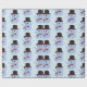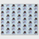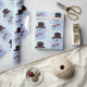 Papier à envelopper avec design avec illustration d'un éléphant bleu avec chapeau et souris brune; illustré par Radka Kavalcova / MaxiHarmony