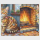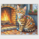 Papier Cadeau Bengal Cat Fireplace with Christmas Lights