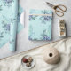 Papier Cadeau Berries pourpres et plumes bleues sur Turquoise pr