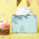 Une belle enveloppe cadeau de baies bleues et plumes de gloire bleue sur un support de papier à texture rugueuse dans un bleu turquoise foncé