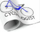 Vélo bleu avec texte CYCOLGIST noir sur arrière - plan blanc. La couleur Arrière - plan peut être modifiée.